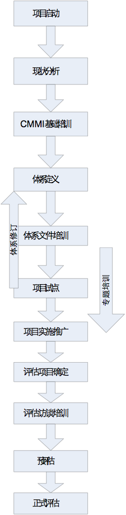 • 1. 项目启动—公司领导动员,CMMI概述培训,改进团队(EPG)组建(0.5天)